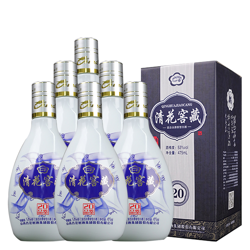 山西杏花村酒集团股份有限公司出品 清花窖藏 20品鉴 53度 清香型白酒 475ml*6瓶 整箱
