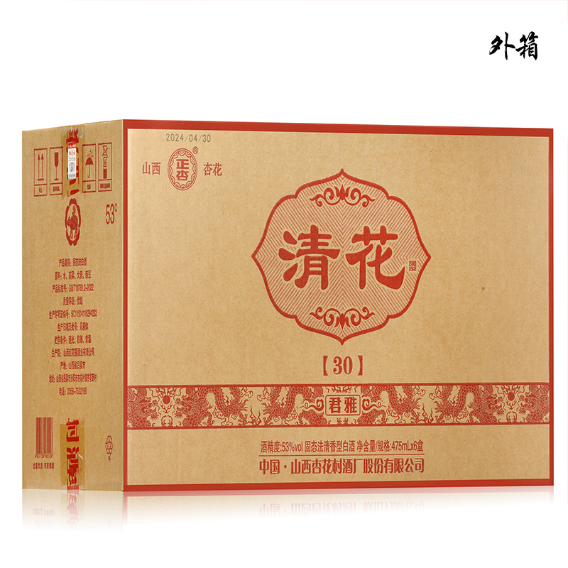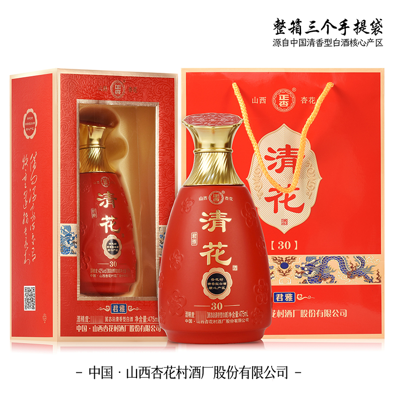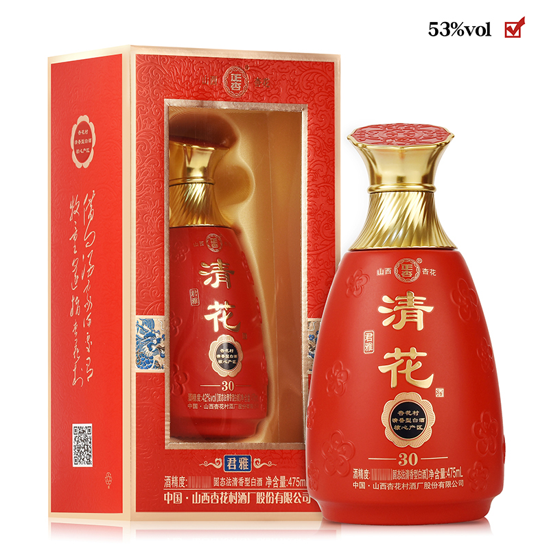 山西杏花村酒集团股份有限公司 清花君雅红瓶 53度 清香型白酒 475ml*6瓶 整箱