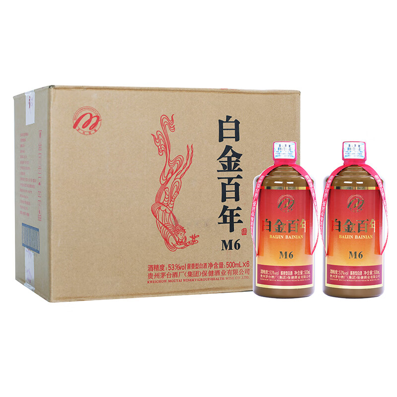茅台集团 白金百年M6 飞天仙女图 53度 酱香型白酒 500ml*6瓶 整箱装