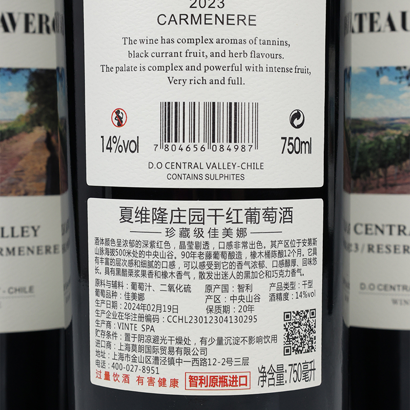 商品名称:夏维隆庄园干红葡萄酒