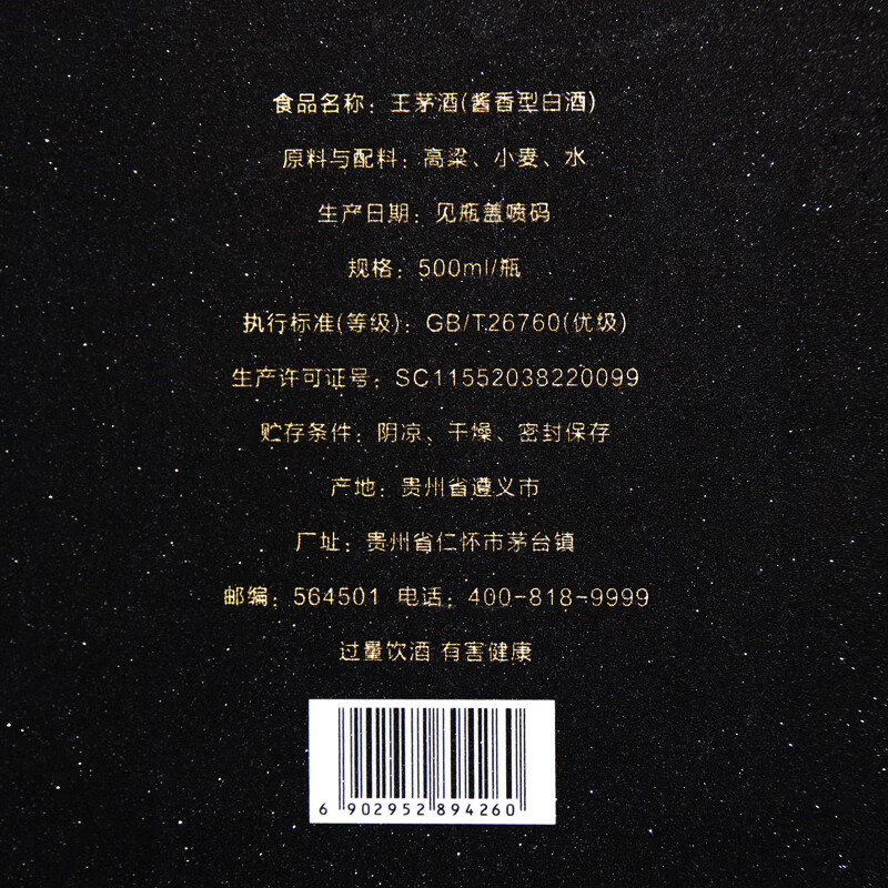 茅台 王茅 祥雅黑茅 53度 酱香型白酒 500ml*6瓶 整箱
