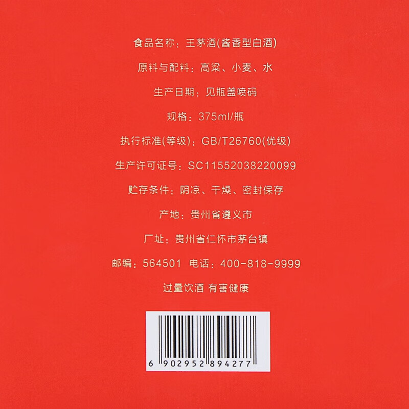 商品名称:茅台王茅祥泰红茅