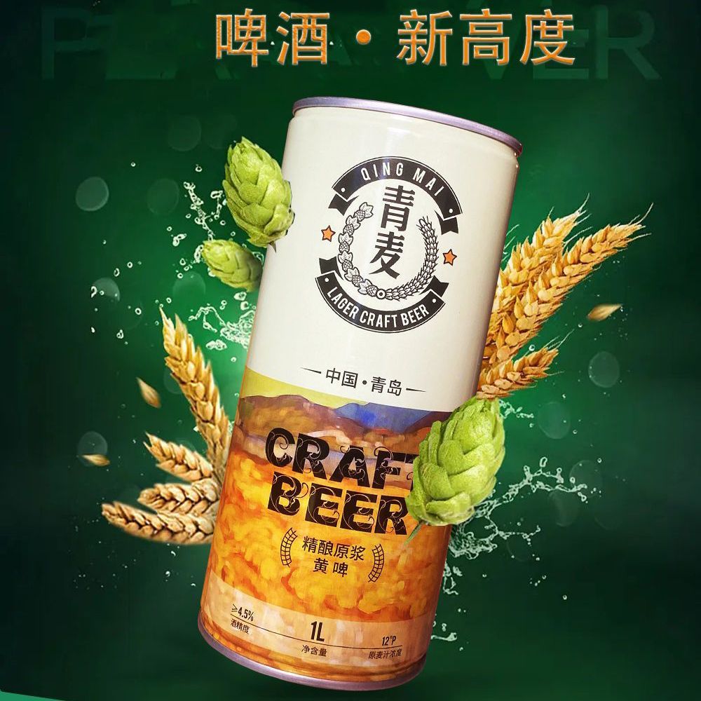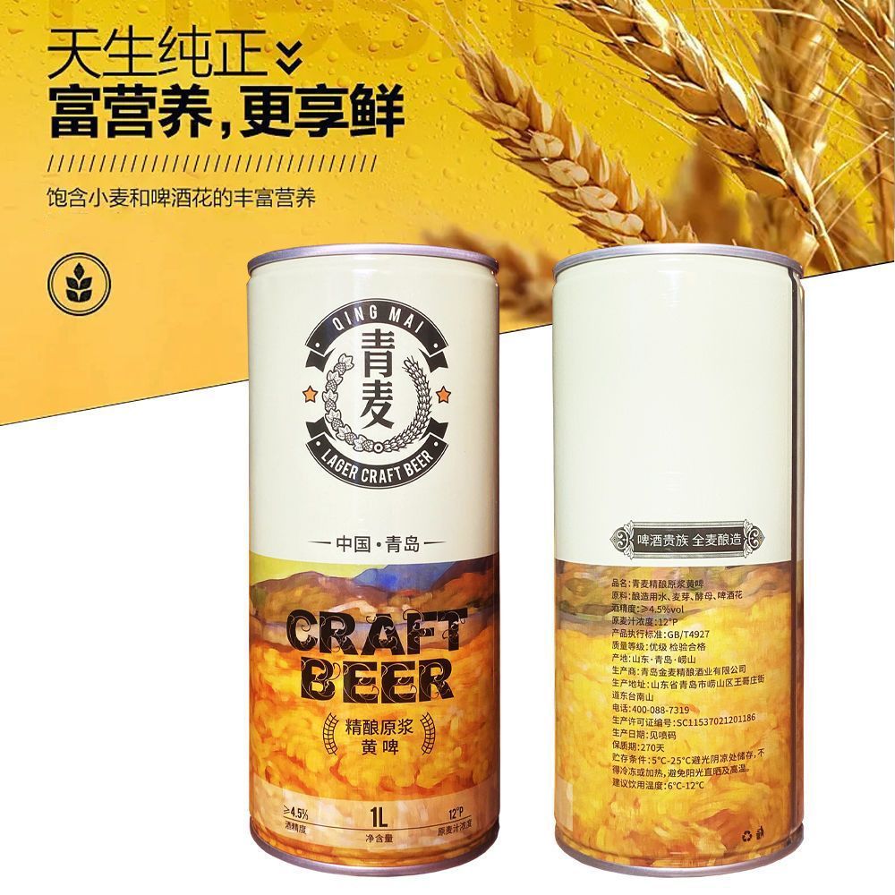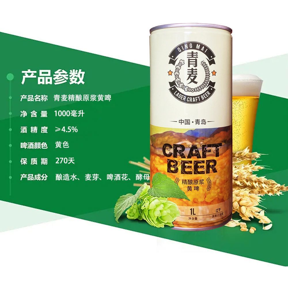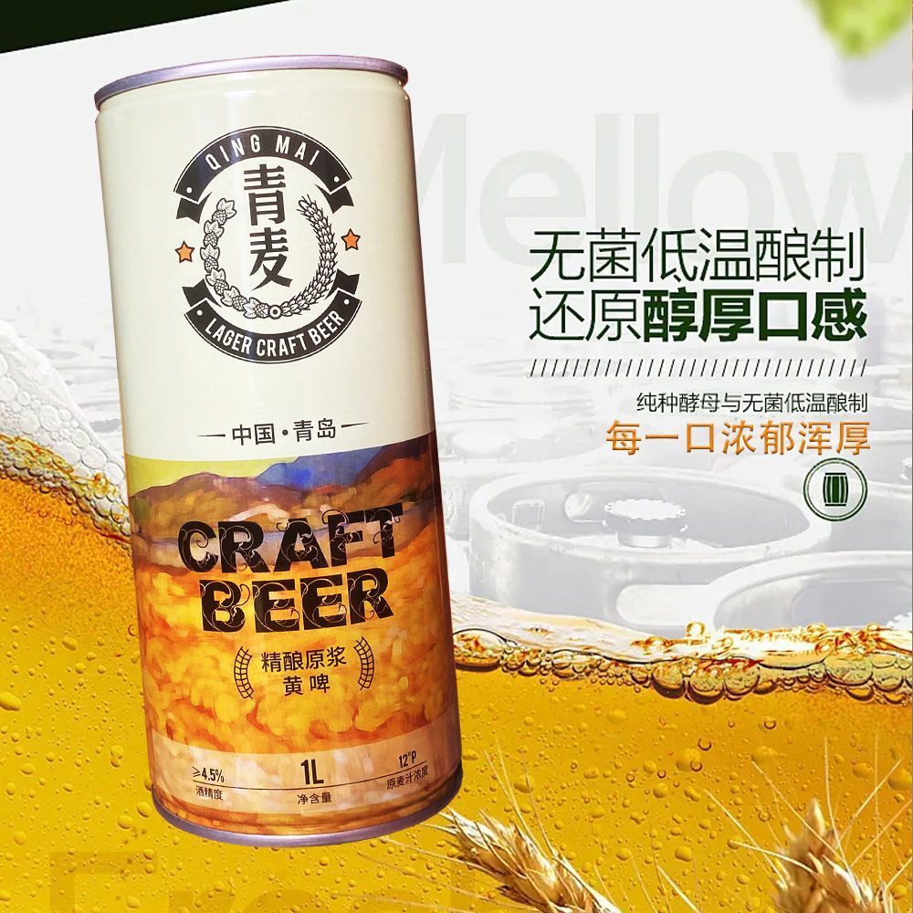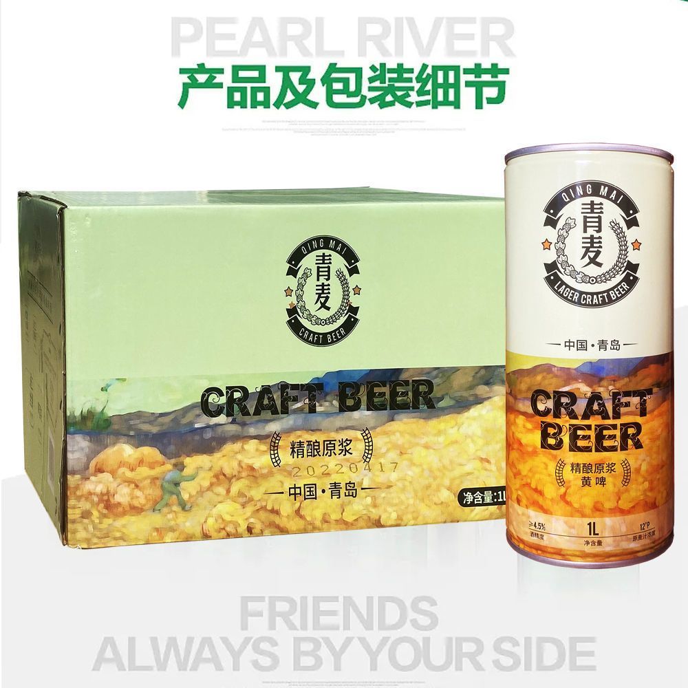 青岛 青麦黄啤 原麦汁浓度12°P 酒精度≥4.5%VOL 1L*6罐 整箱 20箱起拍-批量出厂价专用链接不含运费-根据配送距离详细物流运费咨询客服后确定下单有效