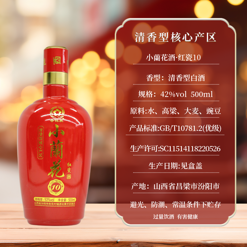 山西杏花村 杏铭泉 红瓷小兰花 清香型白酒 53度 500ml*6瓶 整箱