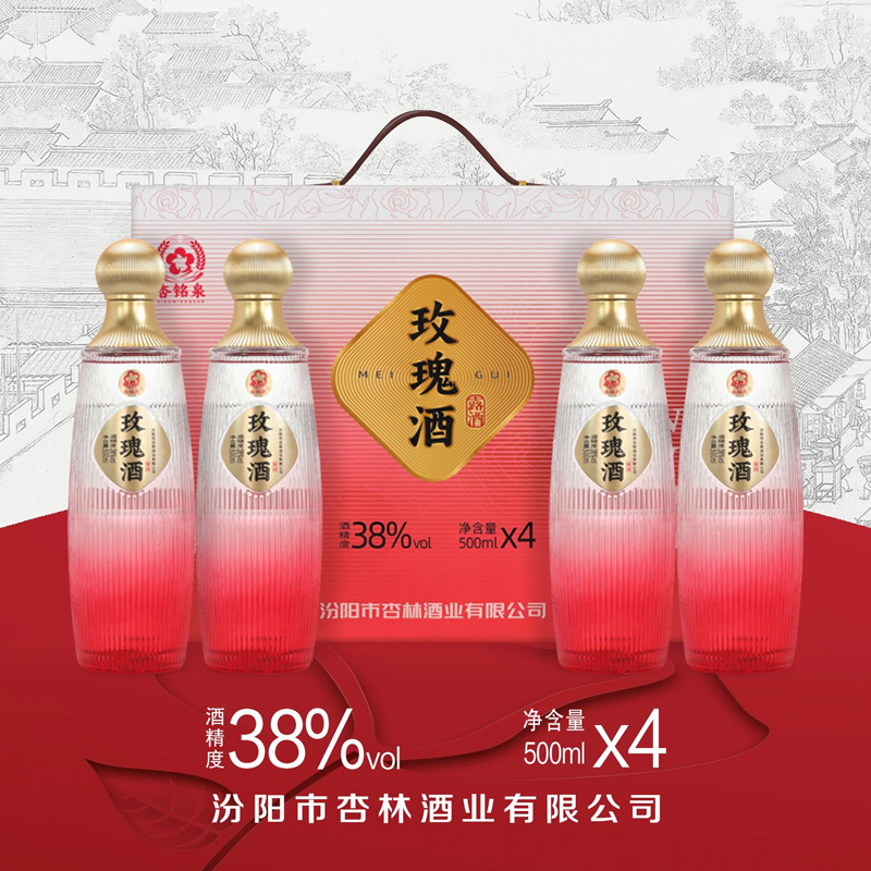 山西杏花村 杏铭泉 玫瑰酒礼盒版 清香型白酒 38度 500ml*4瓶*3盒 整箱