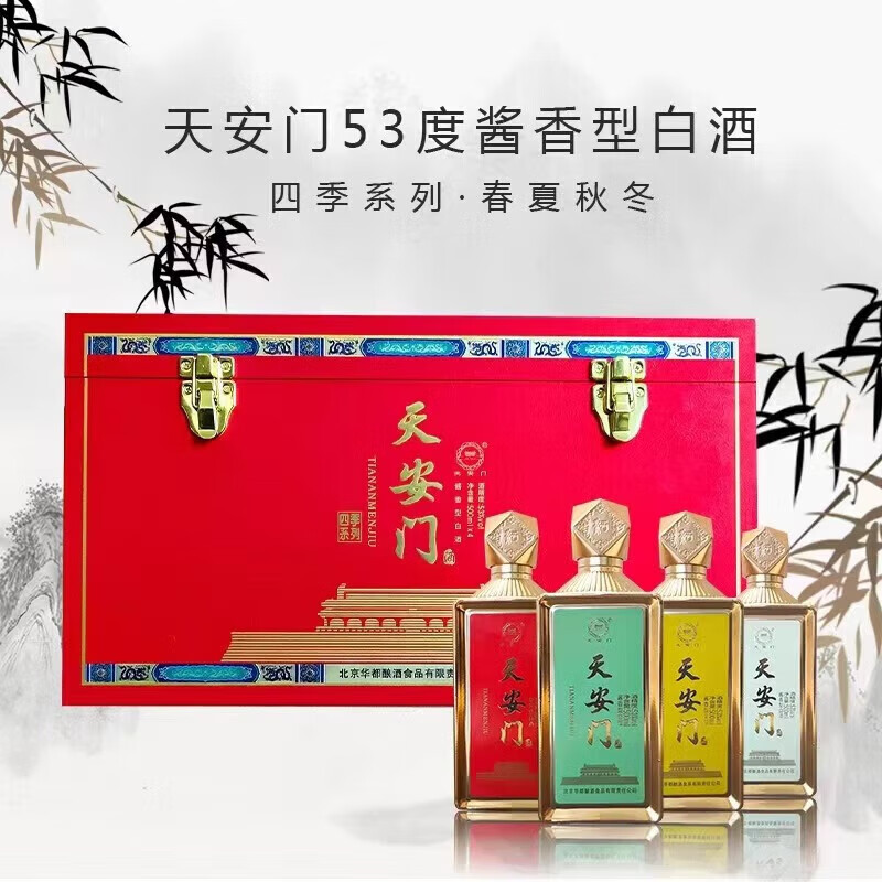 天安门四季系列 春夏秋冬 酱香型白酒 送礼 53度 500mL*4瓶 礼盒装