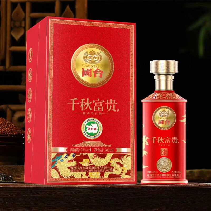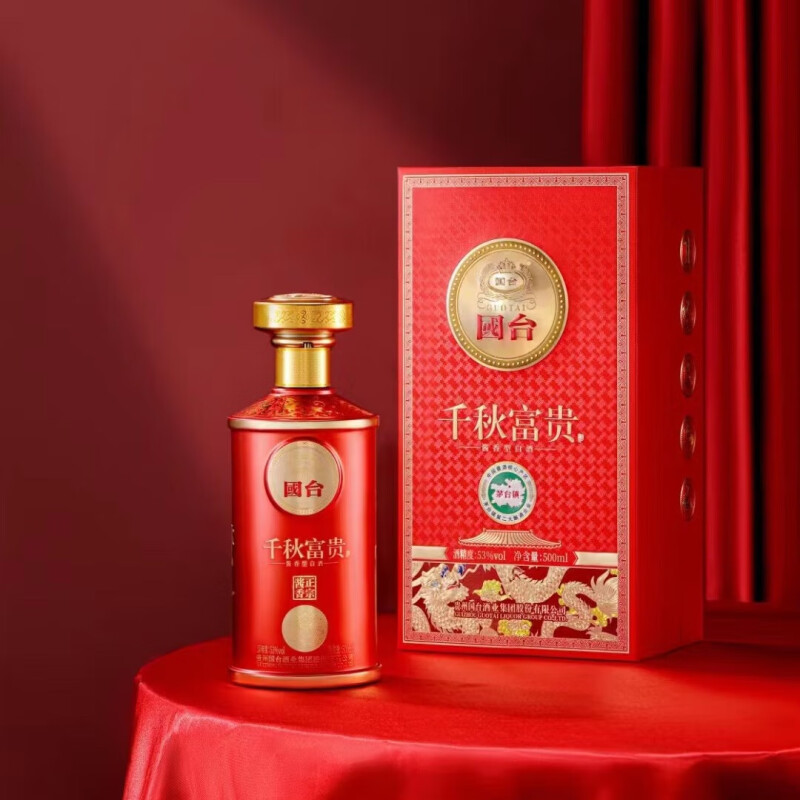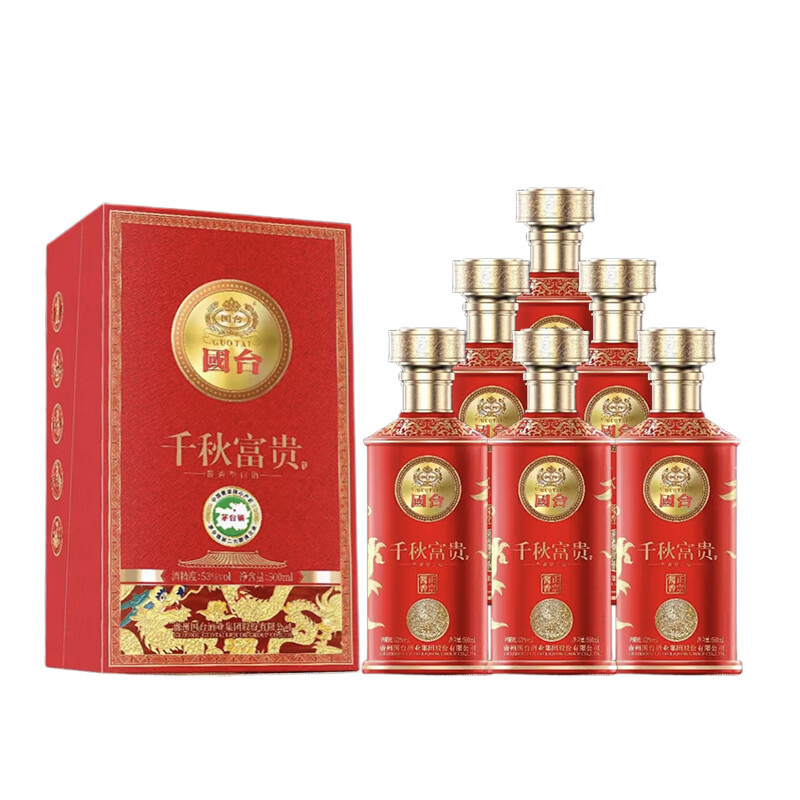 国台 大曲坤沙 千秋富贵 商务宴请 自饮送礼收藏 53%vol 酱香型白酒 500mL*6瓶