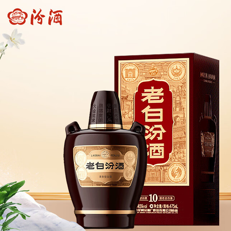 汾酒 山西杏花村酒 老白汾10 清香型白酒 45度 475mL*6瓶 整箱装