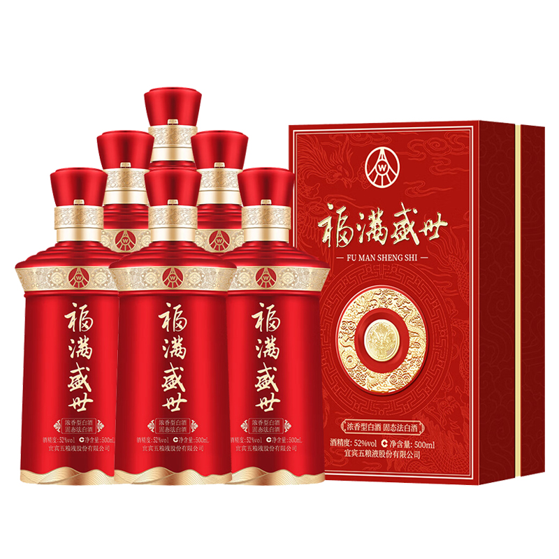 五粮液股份有限公司 福满盛世 盛世福 52度 浓香型白酒 粮食酒婚宴喜庆送礼 500ml*6瓶 整箱装