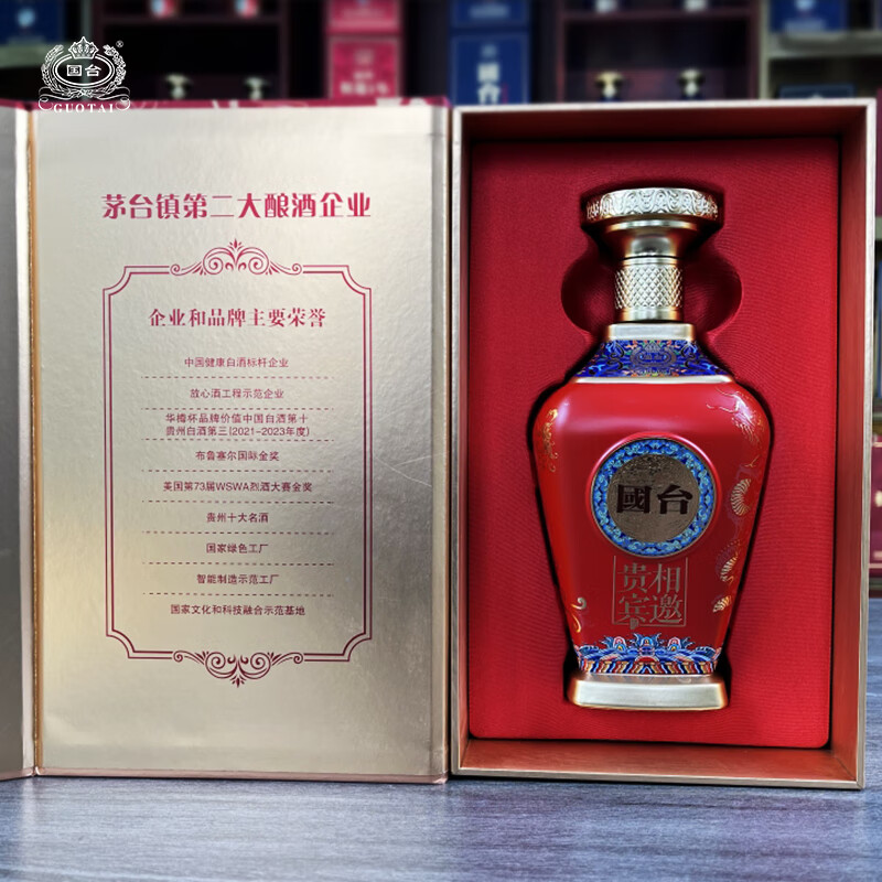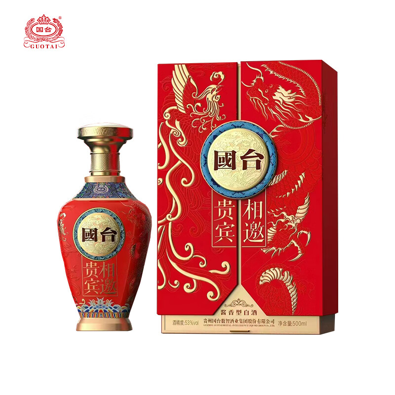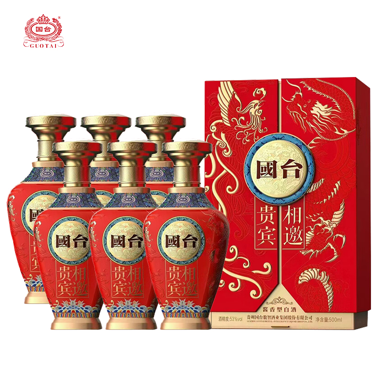 国台相邀贵宾 53度 大曲坤沙酱香型白酒 纯粮酒 升学喜宴宴请酒 500mL*6瓶 整箱装