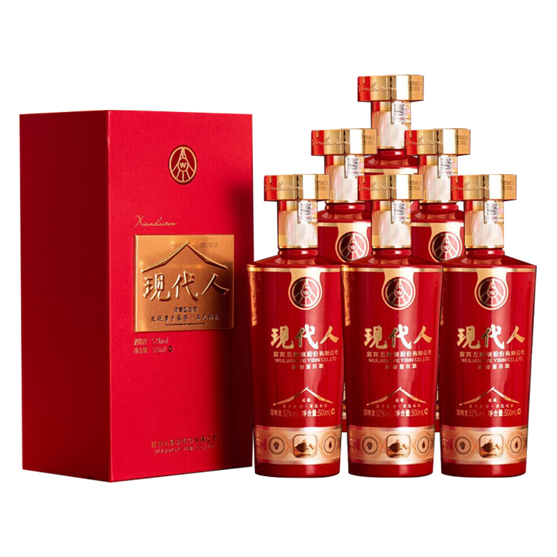 五粮液股份公司 五粮液 现代人 荣耀红 52度 浓香型白酒 52度 500mL*6瓶 整箱装