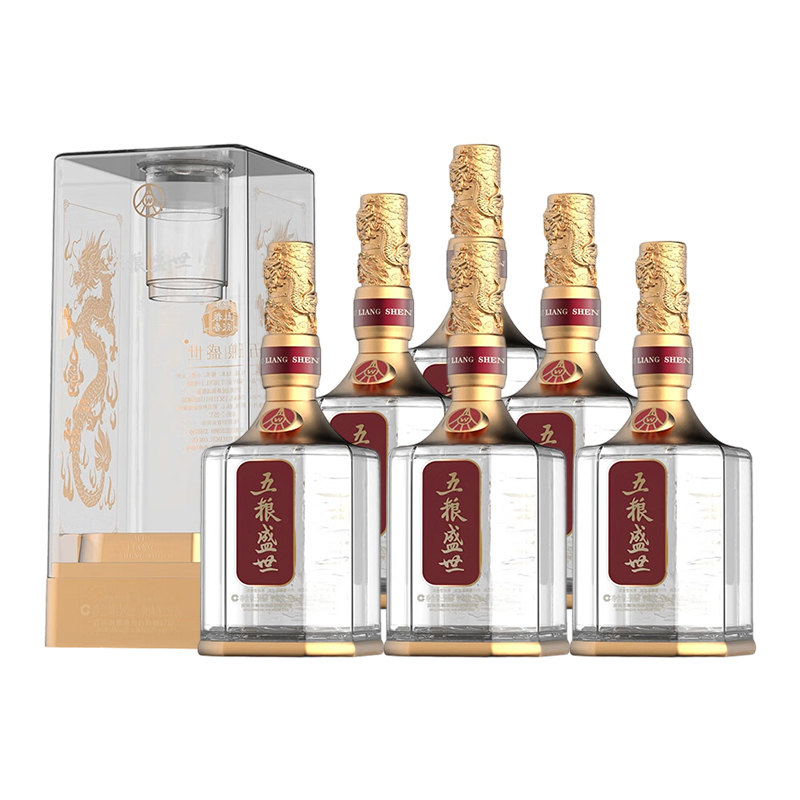 五粮液股份出品 五粮盛世 水晶 52度 浓香型高度白酒 收藏高端白酒 500mL*6瓶 整箱装