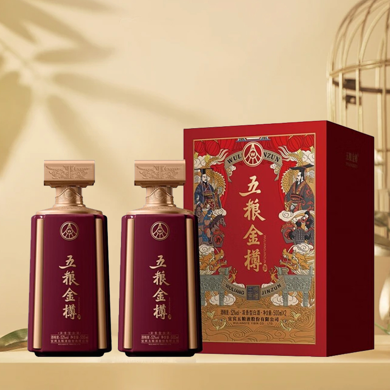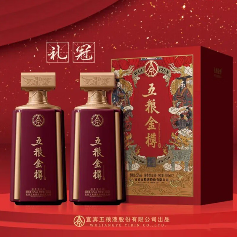 五粮液股份出品 52度 浓香型纯粮白酒 喜酒送礼 商务宴请 500mL*2瓶*3盒 整箱装