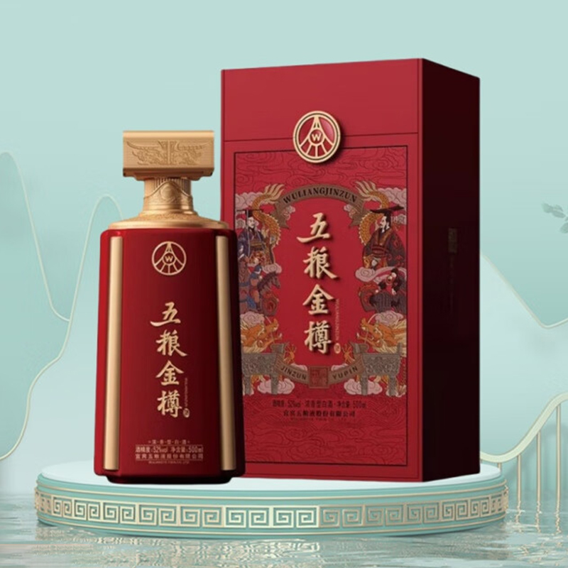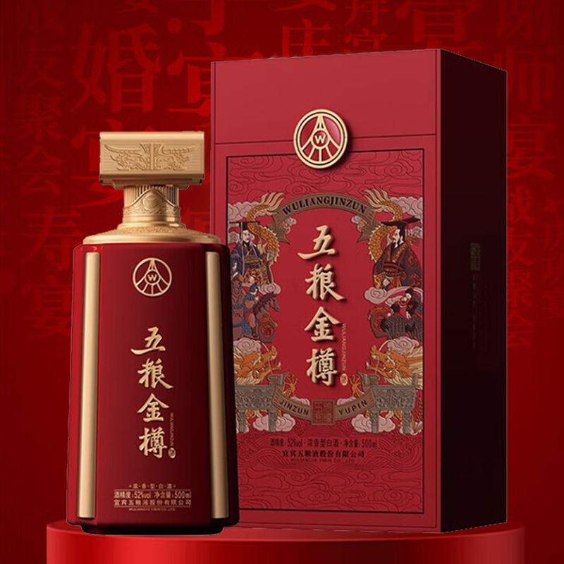 五粮液股份出品 五粮金樽红冠 52度 浓香型纯粮白酒 喜酒送礼 商务宴 500mL*4瓶 整箱装