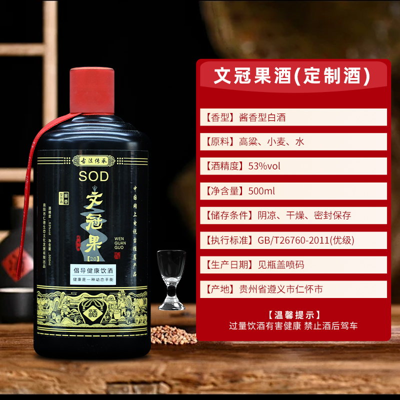 SOD 文冠果酒 53度 酱香型白酒 纯粮酿造 500ml*6瓶 整箱