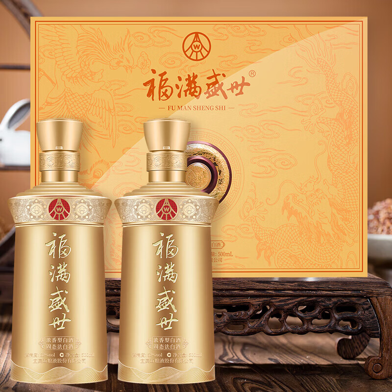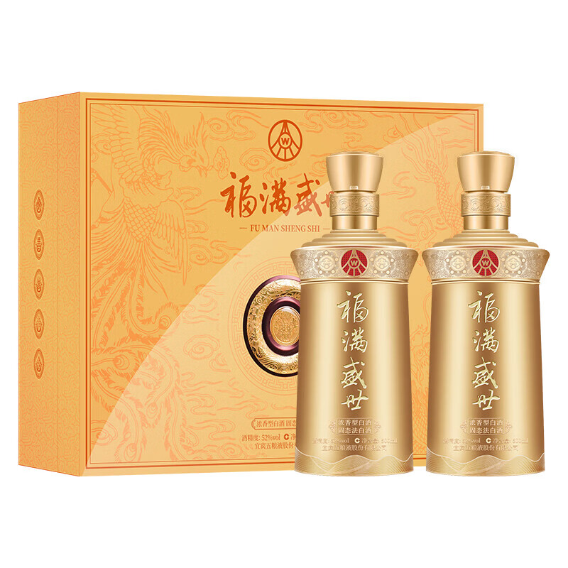 五粮液总厂 福满盛世酒 荣耀福 52度 浓香型白酒 宴请 500ml*2瓶*3盒 整箱装