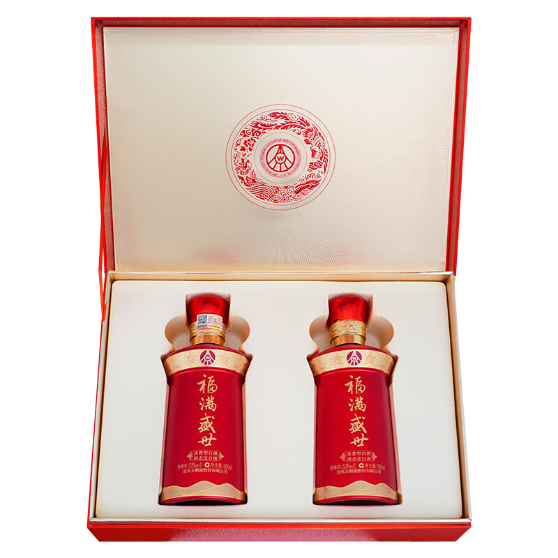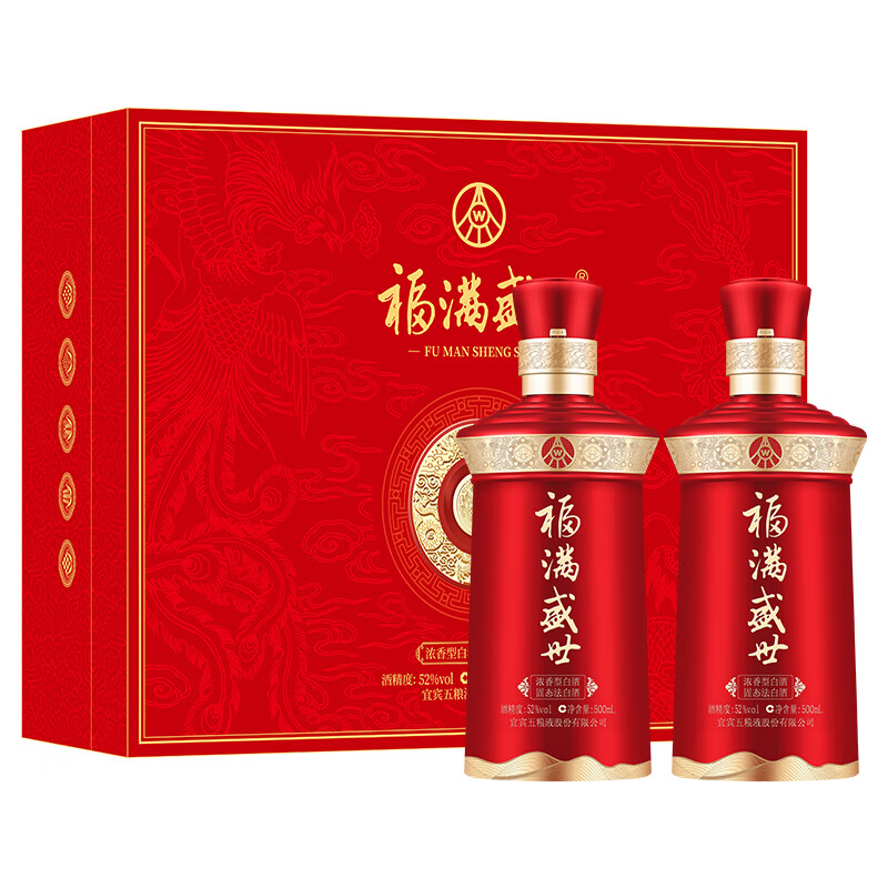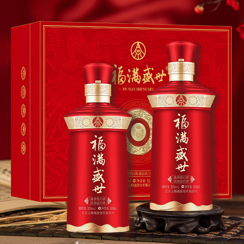 五粮液总厂 福满盛世酒 鸿运福 52度 浓香型白酒 宴请 500ml*2瓶*3盒 整箱装