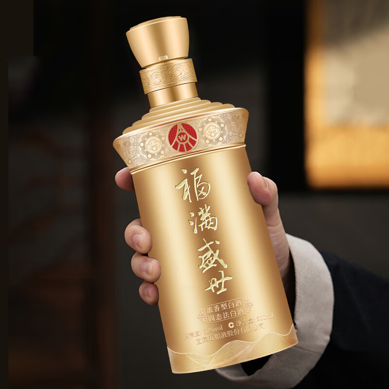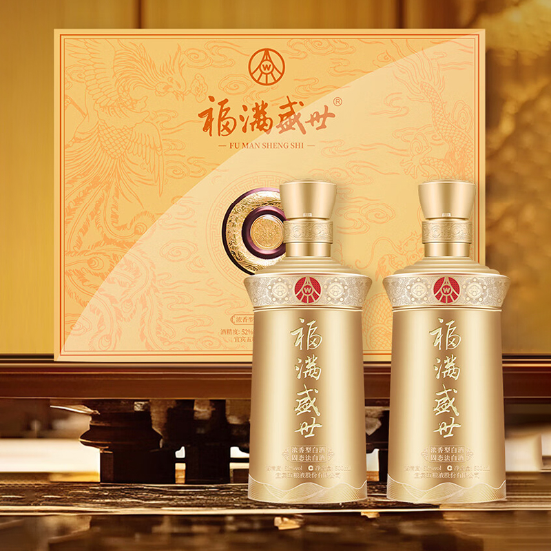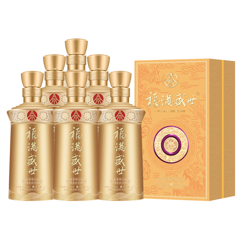 五粮液总厂 福满盛世酒 金樽福 52度 浓香型白酒 宴请 500ml*6瓶 整箱装