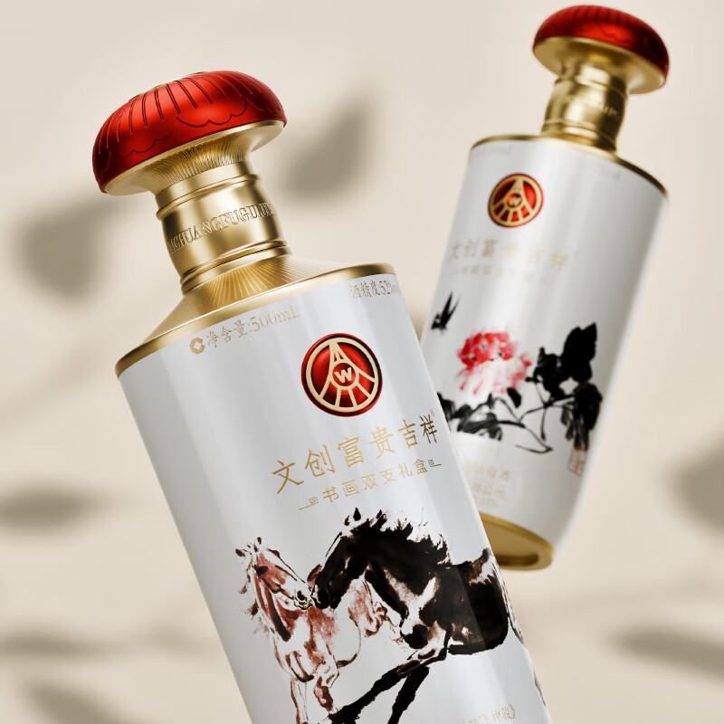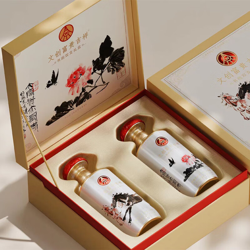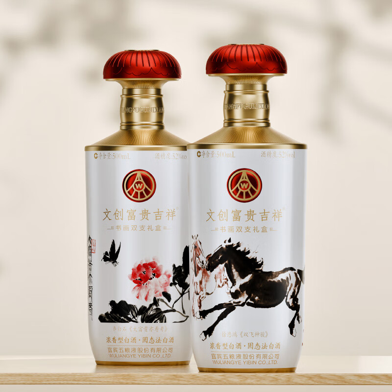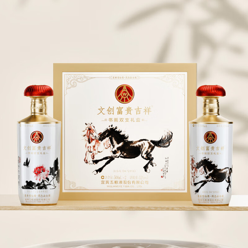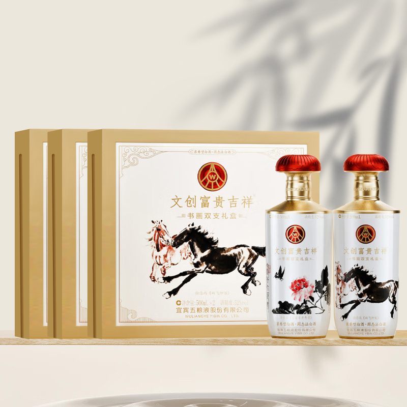 五粮液富贵吉祥 书画文创礼盒 52度 纯粮浓香型白酒 500ml*2瓶*3盒 整箱
