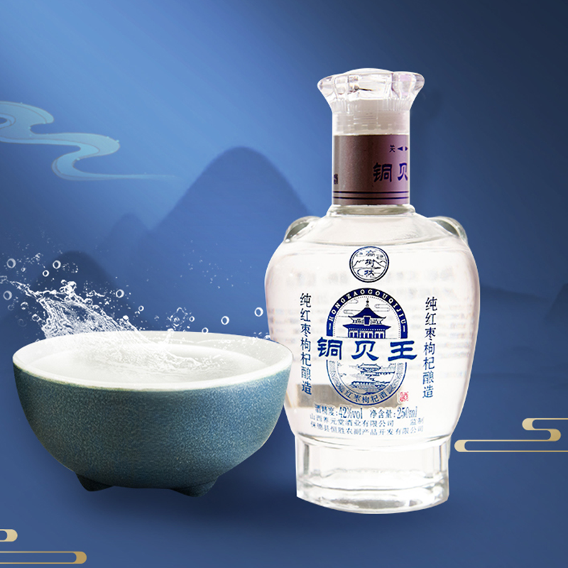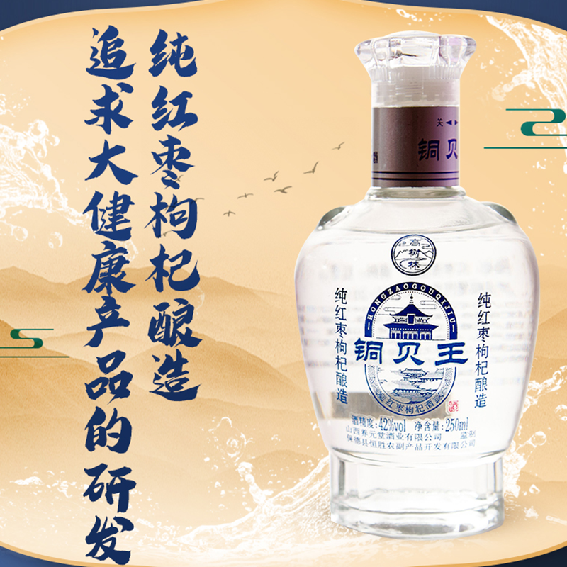 铜贝王 红枣蒸馏酒 42度 纯红枣枸杞酿造 250mL*12瓶 整箱