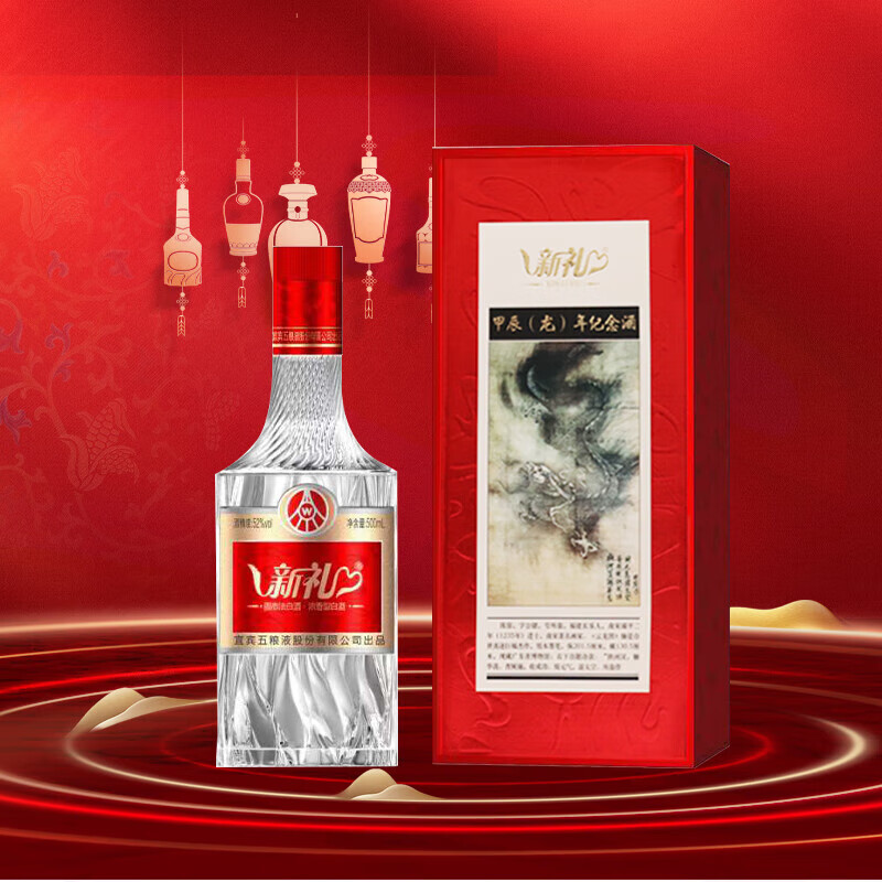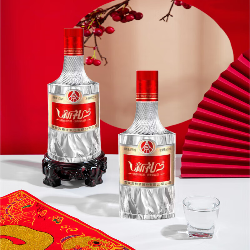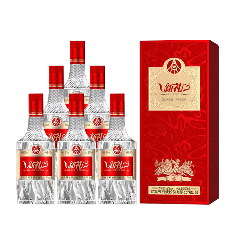五粮液股份 新礼 52度 浓香型白酒 商务宴请 自饮送礼 500ml*6瓶 整箱