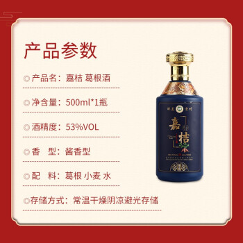 JJJ 嘉桔葛根酒 53度 茅台镇产地礼盒装500ml*1瓶