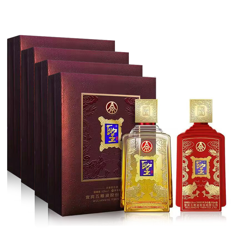 五粮液股份出品 国玺圣酒 52度 浓香型白酒 收藏送礼贺礼佳品 52度 500mL*2瓶*4盒 整箱装