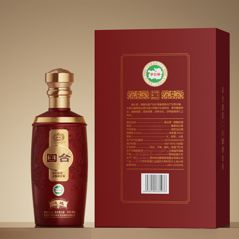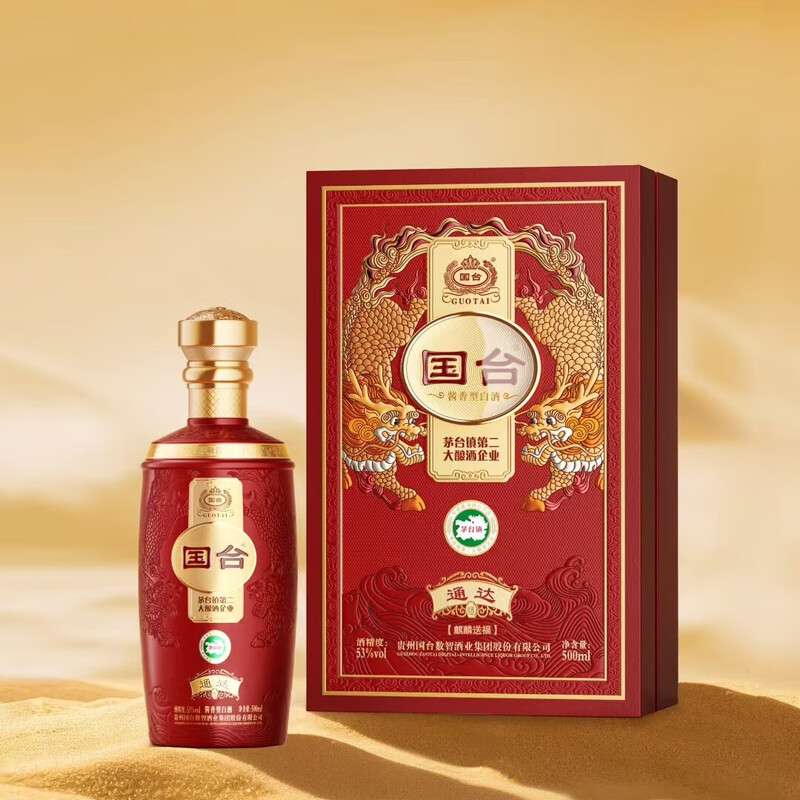 国台 通达酒麒麟送福 53%vol 酱香型白酒 商务宴请 500mL*6瓶 整箱装