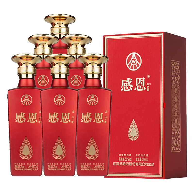 五粮浓香出品 感恩 初心 52度 浓香型白酒 商务宴请 送礼收藏 500mL*6瓶 整箱装