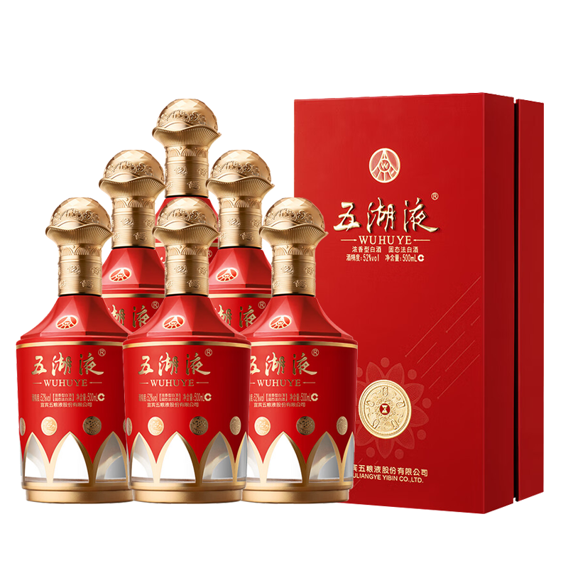 五粮浓香出品 五湖液庆典 52度 浓香型白酒 商务宴请 喜宴 收藏 送礼 500mL*6瓶 整箱装