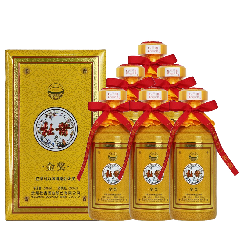 杜酱金奖 贵州茅台镇 53度酱香型白酒 纯粮食高粱酒 酱香经典老酒 礼盒装 500ml*6瓶 整箱装