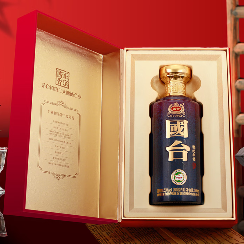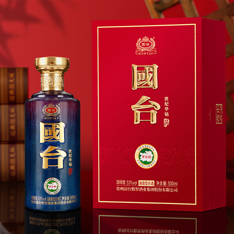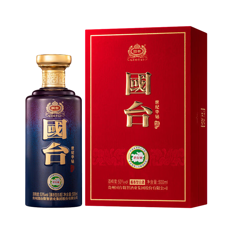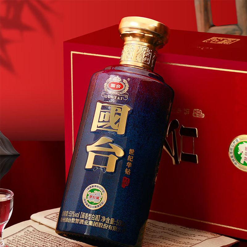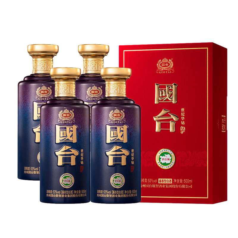 国台贵州国台酒业 国台世纪华钻 53度 酱香型纯粮白酒 商务宴请 500mL*4瓶 整箱