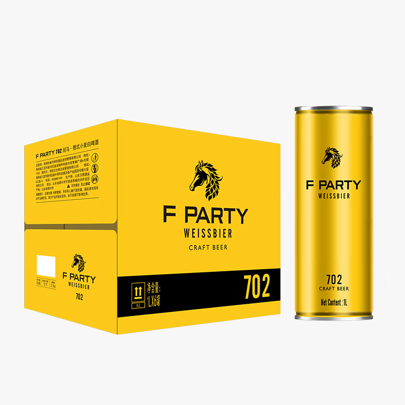 F PARTY 锐马702德式小麦白啤酒 原麦汁浓度12°P 酒精度≥4.8%vol 1L*6瓶 整箱装