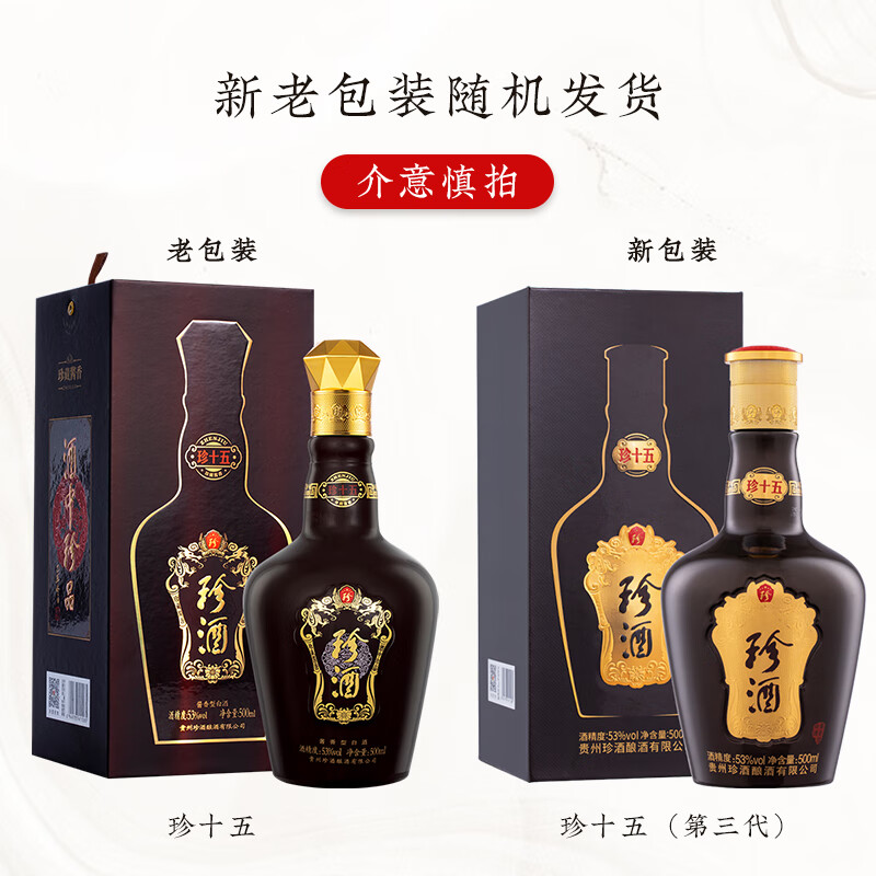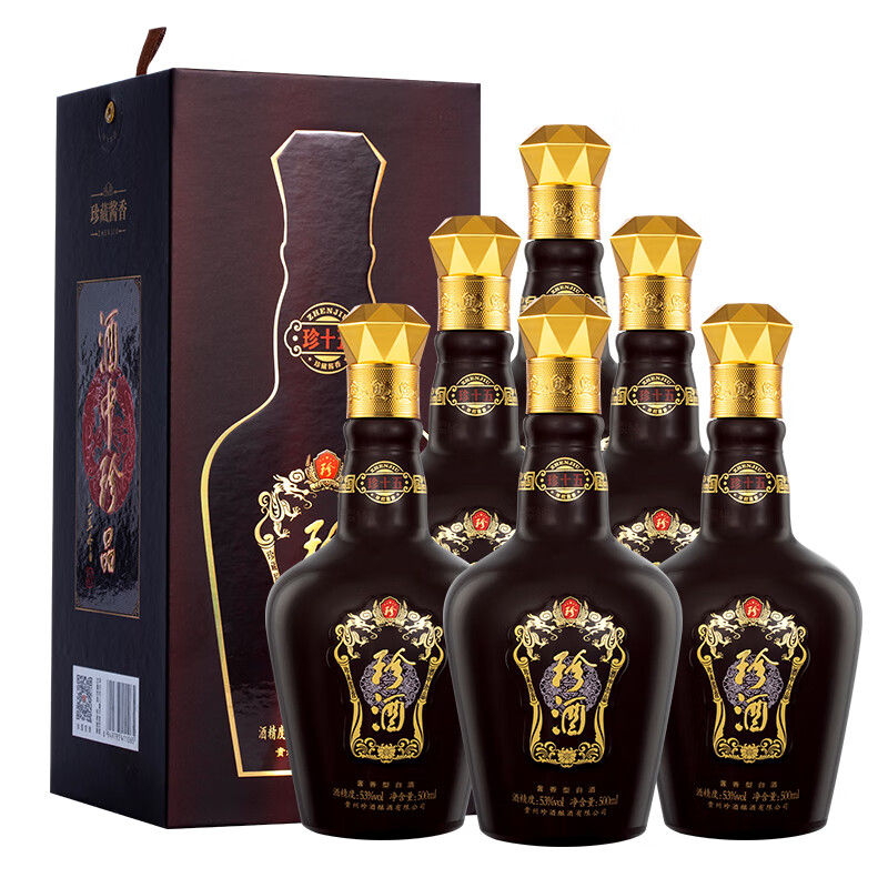 贵州珍酒 酱香型53度白酒 粮食酿造 普通珍十五 500ml 6瓶 新老包装随机发货